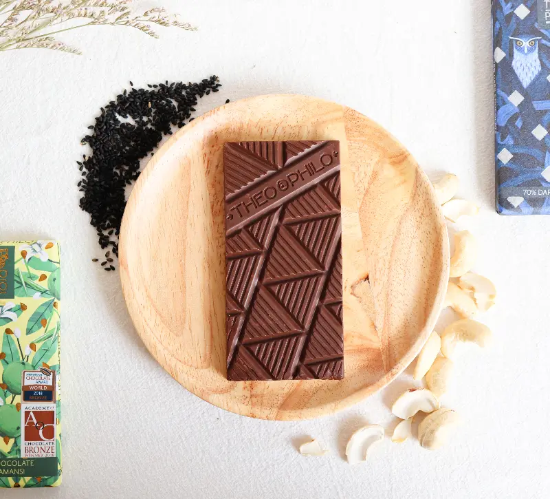 테오앤필로의 초콜릿은 한 마디로 ‘다채롭다’는 표현이 어울립니다. 깔라만시, 풋망고, 투론, 피니피그 등 필리핀의 독특한 재료들을 활용한 초콜릿은 전에 없던 새로운 맛의 경험을 선사합니다. 깔라만시 다크 초콜릿은 상큼한 향이 은은하게 퍼지면서도 신맛이나 단맛이 과하지 않아 완벽한 균형을 이룹니다.