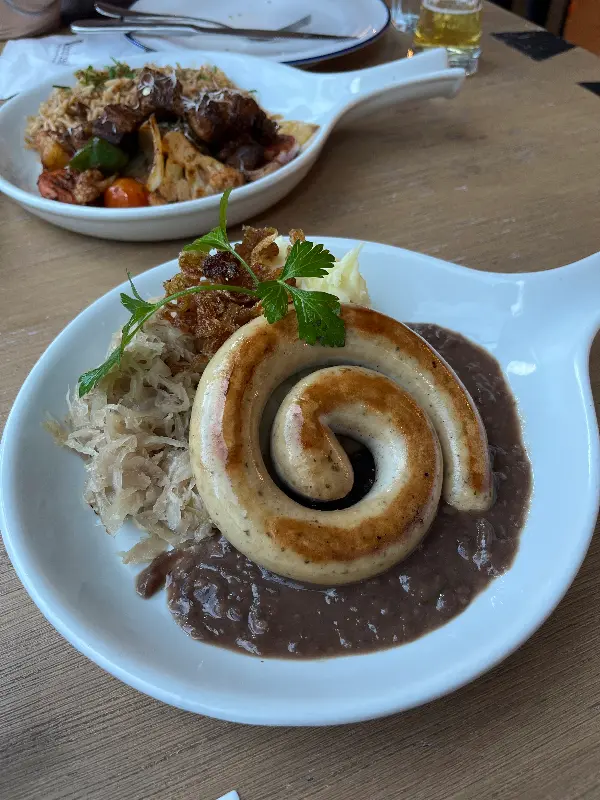 크리스마스 시즌에 방문하여 크리스마스 햄 세트를 맛본 한 방문객은 햄과 빵의 완벽한 조화에 감탄했습니다. 다양한 종류의 소시지를 맛보며, 작년 독일 여행의 추억을 떠올렸다는 후기도 있습니다. 고소하게 구워진 소시지와 새콤한 사워크라우트의 조합은 독일 현지의 맛을 그대로 재현해 냅니다.