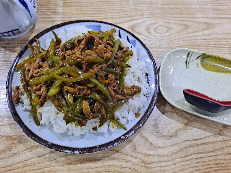 이어서 짜장 볶음밥이 나왔다. 보기만 해도 군침이 도는 비주얼이었다. 고슬고슬하게 볶아진 밥알 하나하나에 짜장의 풍미가 깊숙이 배어 있었다. 짭짤하면서도 달콤한 짜장의 맛이 입맛을 돋우었고, 아삭아삭 씹히는 야채의 식감이 즐거움을 더했다. 볶음밥 위에 소고기찜 국물의 고기를 올려 함께 먹으니, 그 맛이 더욱 풍성해졌다.