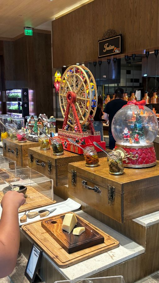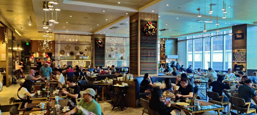 쿠시나 씨 키친의 조식 뷔페는 다양한 음식 종류와 뛰어난 맛으로 명성이 자자합니다. 전 세계 각국의 요리를 한자리에서 맛볼 수 있는 이곳은 미식가들에게는 천국과 다름없습니다. 신선한 해산물과 특선 그릴 요리는 물론, 필리핀 전통 요리와 세계 각국의 풍미를 완벽하게 담아낸 디저트까지, 선택의 폭이 매우 넓습니다. 뷔페 라인에 길게 늘어선 음식들은 하나하나 정성스럽게 조리되어 아름답게 플레이팅 되어 있어, 시각적인 즐거움까지 선사합니다. 특히, 뷔페 곳곳에 설치된 장식들은 식사의 즐거움을 더합니다. 작은 관람차 모형이나 크리스마스 분위기의 스노우볼은 시선을 사로잡으며, 식사를 더욱 풍성하게 만들어 줍니다.