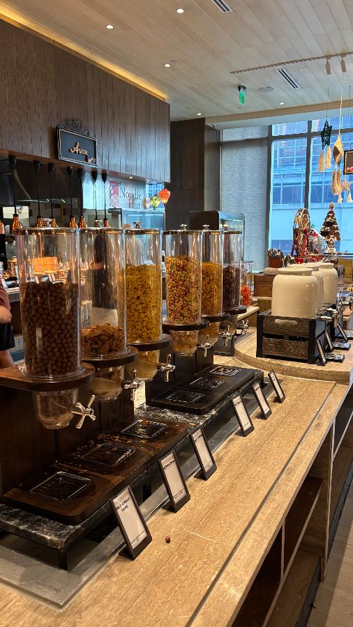 조식 뷔페에서 빼놓을 수 없는 즐거움은 바로 스위트 코너입니다. 쿠시나 씨 키친의 스위트 코너는 예상치 못한 즐거움을 선사합니다. 갓 구운 패스트리와 케이크, 신선한 과일은 물론, 다양한 종류의 시리얼과 토핑이 준비되어 있습니다. 특히, 달콤한 간식들은 아침 식사를 더욱 특별하게 만들어 주는데, 너무 많은 사탕을 먹고 나면 약간의 죄책감마저 들 정도로 유혹적입니다. 갓 구운 빵과 함께 즐기는 신선한 잼과 버터, 그리고 따뜻한 커피 한 잔은 하루를 활기차게 시작하는 데 완벽한 조합입니다. 아이들을 위한 알록달록한 시리얼 코너도 잘 마련되어 있어, 가족 단위 방문객들에게도 큰 만족감을 줍니다. 다양한 종류의 시리얼을 취향에 따라 선택하고, 신선한 우유나 요거트를 곁들여 먹을 수 있습니다. 건과일, 견과류, 초콜릿 칩 등 다채로운 토핑은 시리얼을 더욱 풍성하게 만들어 줍니다.