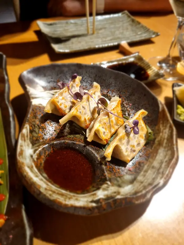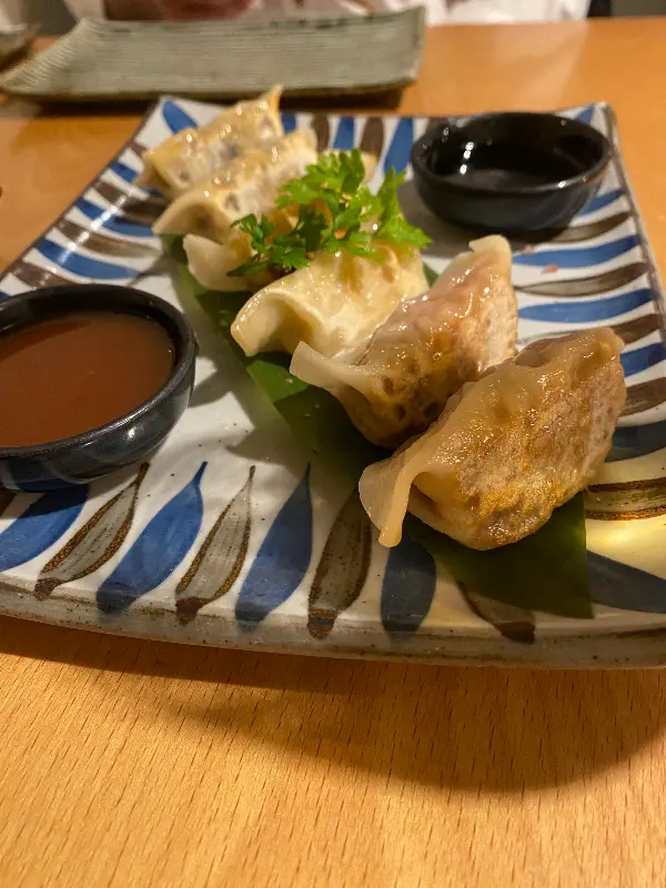 겉바속촉의 정석, 도키도키 교자. 특제 소스와 함께 즐기면 더욱 풍성한 맛을 느낄 수 있다.