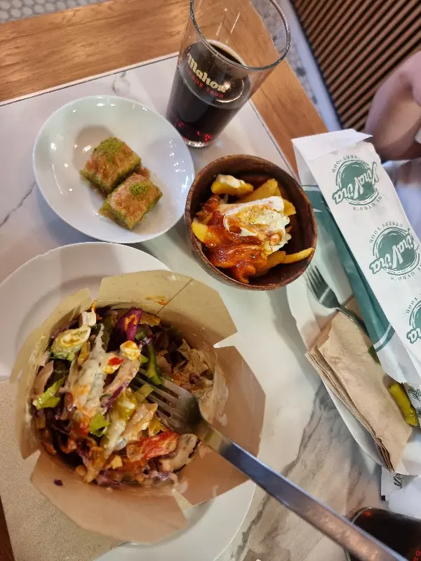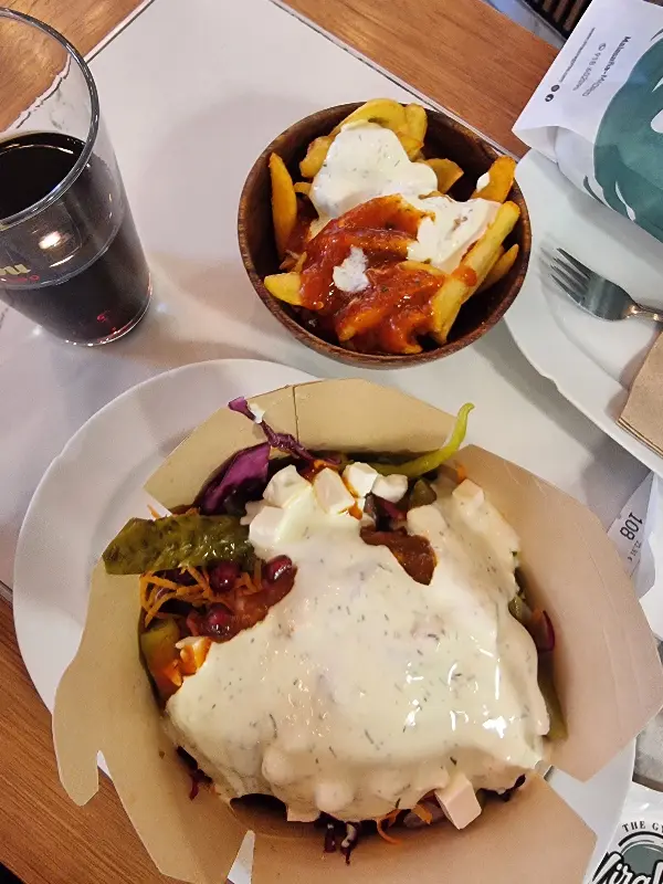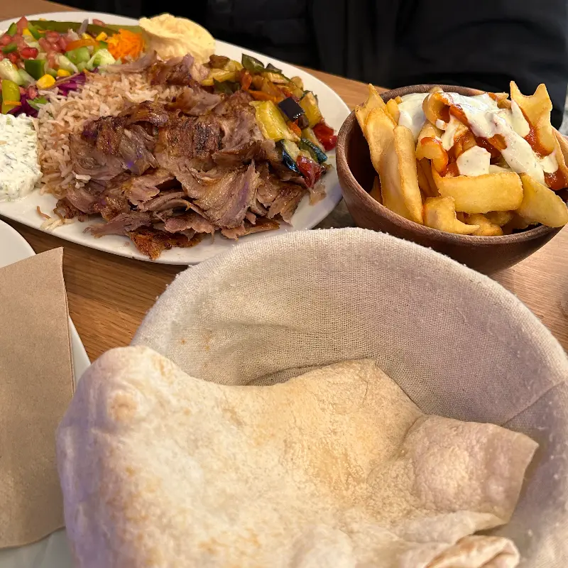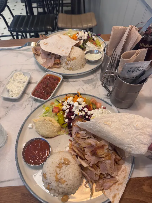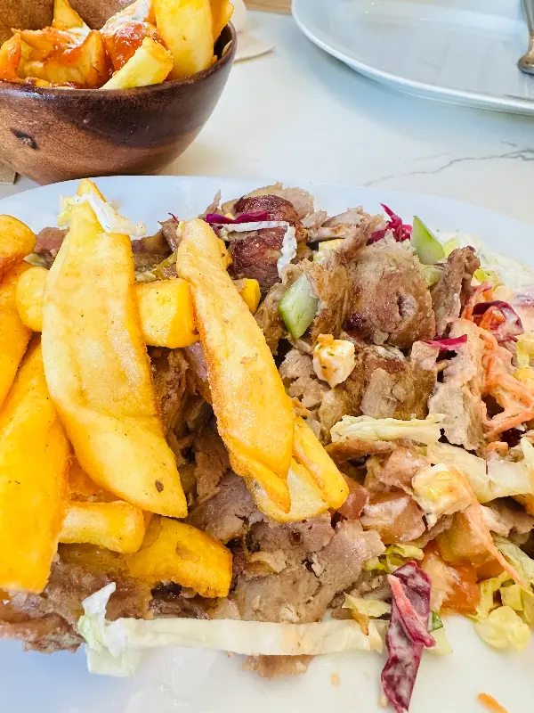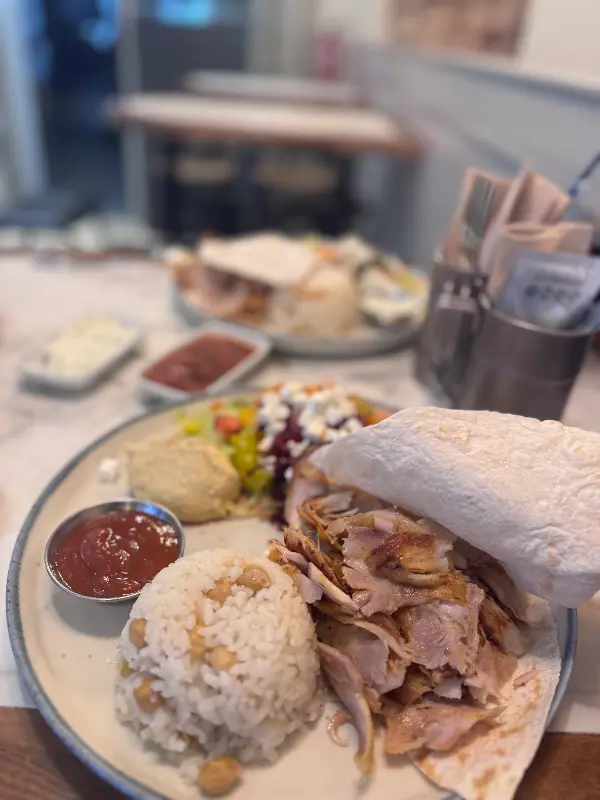 자이로스는 보기에도 좋았지만, 맛은 더욱 훌륭했다. 신선한 야채와 듬뿍 들어간 고기는 입안에서 환상적인 조화를 이루었다. 고기는 양념이 잘 되어 있어 풍미가 깊었고, 육즙이 풍부해 부드러운 식감을 자랑했다. 특히 좋았던 점은 맵지 않으면서도 제가 정말 좋아하는 소스(예: 카칙 소스)가 듬뿍 들어있어 한국인 입맛에도 잘 맞는다는 것이다. 또한, 할랄 음식을 제공한다는 점도 만족스러웠다.