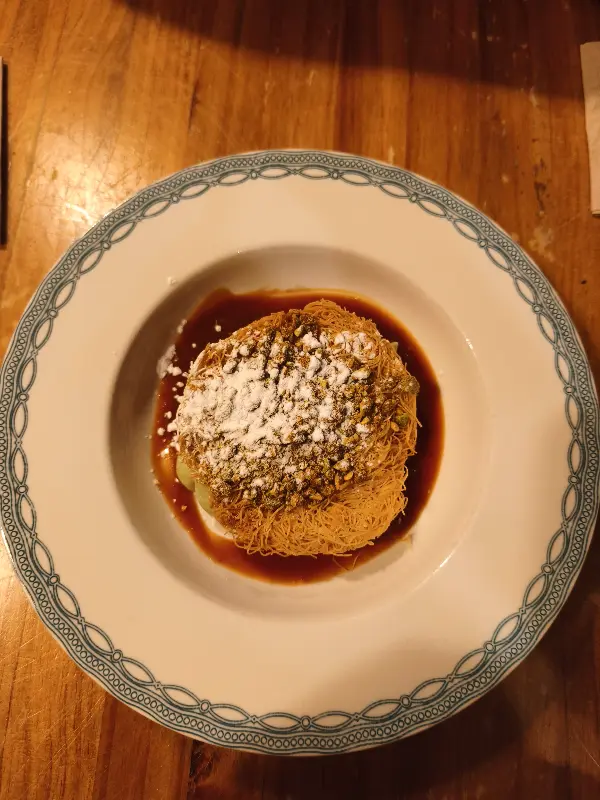 식사의 마지막을 장식한 피스타치오 디저트는 그야말로 황홀경이었다. 달콤하면서도 고소한 피스타치오의 풍미는 입안 가득 퍼져 나갔고, 부드러운 크림과 바삭한 식감의 조화는 잊을 수 없는 맛을 선사했다. 디저트를 한 입 먹을 때마다 행복감이 밀려왔고, 마드리드에서의 첫 식사를 완벽하게 마무리할 수 있었다. 다음에 방문한다면 꼭 다시 먹고 싶은, 최고의 디저트였다.