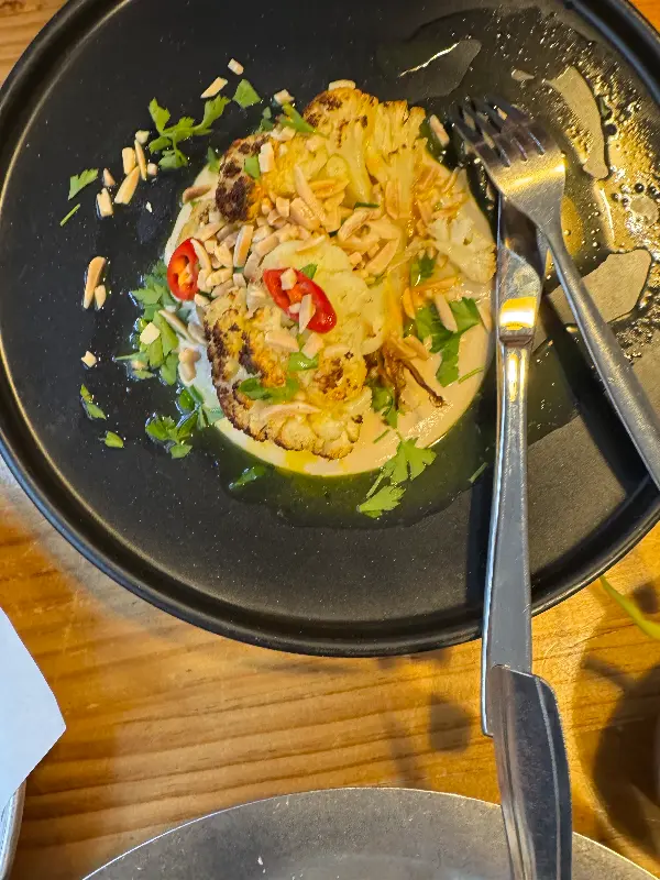 입 안 가득 퍼지는 풍미, 콜리플라워와 후무스의 조화는 최고의 선택이었습니다.