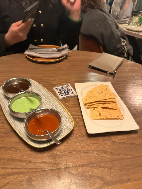문을 열자마자 눈에 들어온 건 세련되고 현대적인 인테리어였다. 인도 전통의 느낌을 살리면서도 깔끔하고 트렌디한 분위기가 인상적이었다. 은은한 조명이 테이블을 비추고, 편안한 의자가 놓여 있어 아늑함이 느껴졌다. 마치 고급 라운지에 온 듯한 기분이었다.