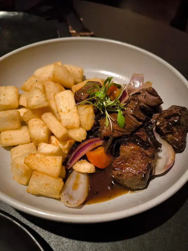 육즙 가득한 고기와 큼지막한 감자튀김이 함께 나오는 요리도 빼놓을 수 없다. 겉은 바삭하고 속은 촉촉한 감자튀김은 짭짤하면서도 고소한 맛이 일품이었다. 부드러운 고기는 입안에서 살살 녹아내리면서 풍부한 육즙을 뿜어냈다. 함께 제공된 소스에 찍어 먹으니 감칠맛이 더해져 더욱 맛있었다.