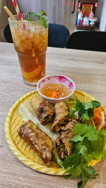 Le Moon의 대표 메뉴는 단연 쌀국수입니다. 소고기 쌀국수는 큼지막한 소고기 슬라이스가 듬뿍 들어가 있어 보기만 해도 든든합니다. 국물은 맑고 깊은 맛이 일품이며, 은은하게 퍼지는 향신료의 풍미가 젓가락질을 멈출 수 없게 만듭니다. 한 모금 마시는 순간, 온몸으로 퍼지는 따뜻함과 개운함은 마치 해장하는 듯한 시원함을 선사합니다. 특히 느끼함으로 지쳐있던 속을 달래주는 마법 같은 경험을 할 수 있습니다.