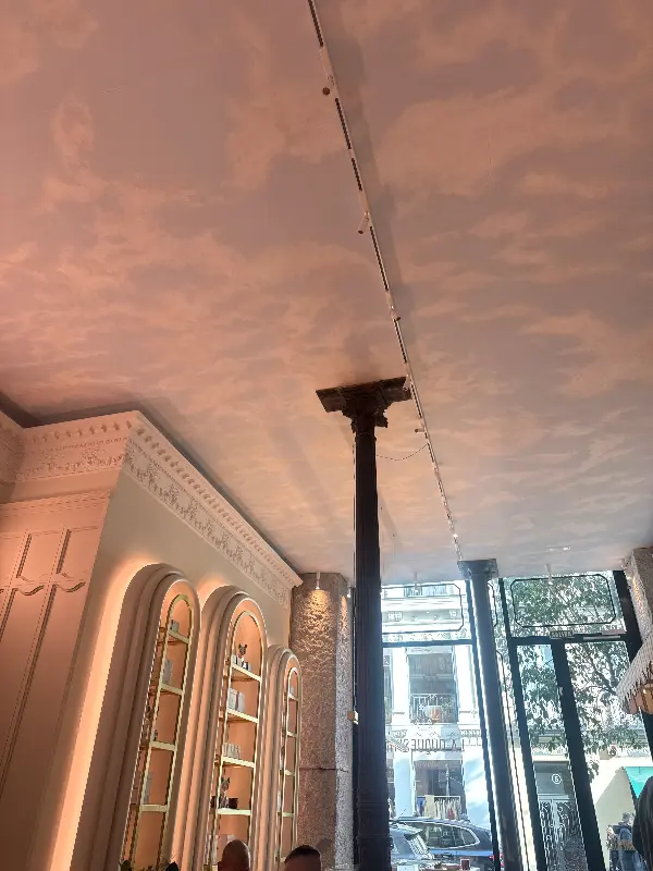 천장에는 구름이 수놓아진 듯한 섬세한 페인팅이 시선을 사로잡고, 고풍스러운 기둥은 공간에 웅장함을 더합니다.