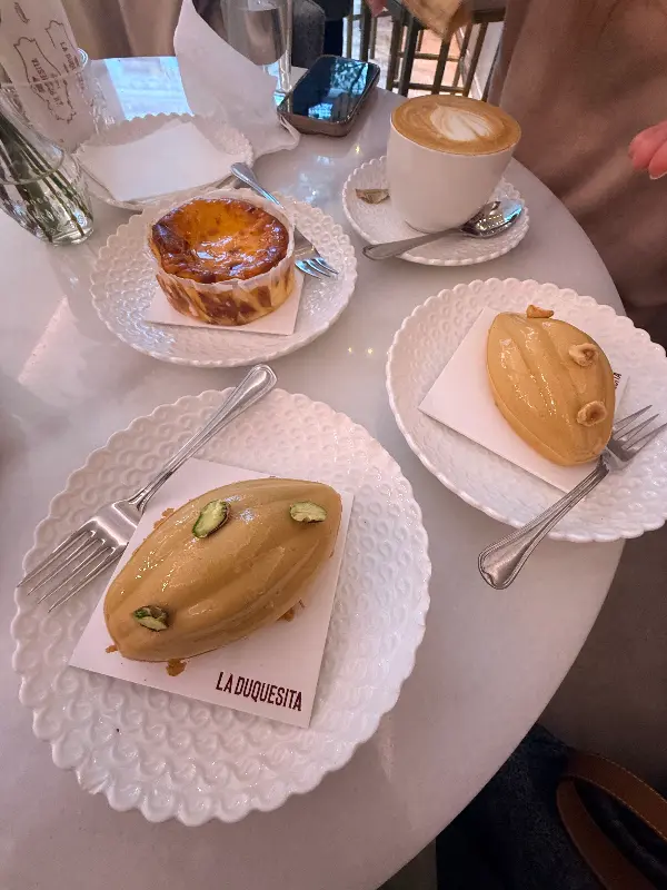 라 두케시타는 커피와 빵은 물론, 케이크, 트러플, 초콜릿, 킹 케이크, 투론(turrón) 등 다양한 디저트를 맛볼 수 있는 곳입니다. 특히, 이곳의 페이스트리는 훌륭한 맛으로 정평이 나 있습니다. 촉촉하고 부드러운 식감과 입안 가득 퍼지는 달콤함은 잊을 수 없는 경험을 선사합니다.