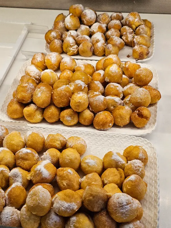 팔미에, 케이크, 페이스트리 등 모든 메뉴가 훌륭하지만, 특히 부뉴엘로(buñuelos)는 꼭 맛봐야 할 메뉴입니다. 매년 이맘때쯤 마드리드의 여러 빵집에서 부뉴엘로를 맛보는 것을 즐기는 사람들에게 라 두케시타의 부뉴엘로는 실망감을 안겨줄 수도 있습니다. 하지만, 라 두케시타의 부뉴엘로는 다른 곳과는 다른 특별한 매력을 지니고 있습니다. 겉은 바삭하고 속은 촉촉하며, 입안 가득 퍼지는 달콤함은 잊을 수 없는 맛을 선사합니다.