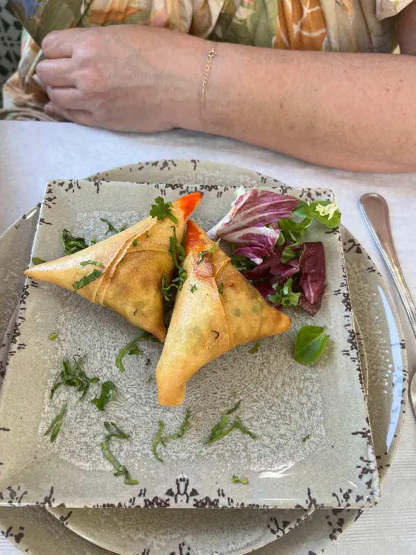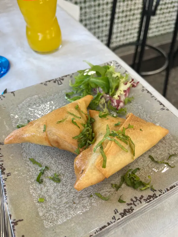 바삭한 튀김옷 속에는 부드러운 양파가 가득했고, 은은하게 퍼지는 향신료 향이 입안을 가득 채웠다. 특히, 사모사는 겉은 바삭하고 속은 매콤한 야채와 향신료로 가득 차 있어 잊을 수 없는 맛이었다.