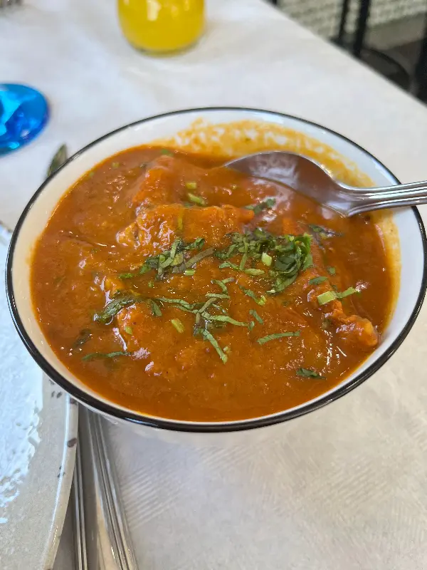 이어서 등장한 메인 코스는 탄두리 치킨과 치킨 카레일 마살라였다. 탄두리 치킨은 겉은 붉은색으로 먹음직스럽게 구워져 나왔고, 닭고기 속까지 양념이 깊숙이 배어 있었다. 한 입 베어 무니 부드러운 닭고기 살에서 육즙이 흘러나왔고, 탄두리 특유의 향신료 향이 입안 가득 퍼졌다.