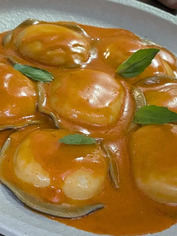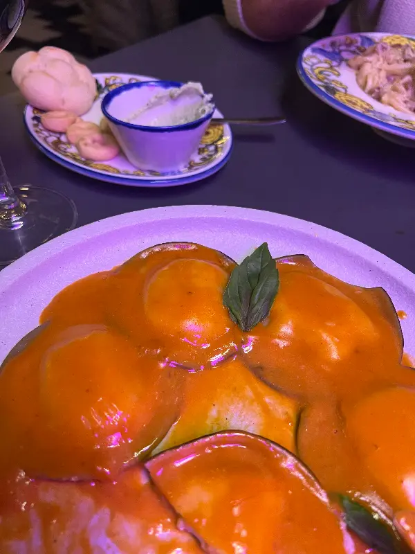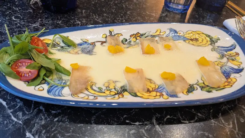 우리는 다양한 전채 요리를 맛보기 위해 토스카나 플래터를 주문했다. 플래터에는 햄, 치즈, 올리브 등 다양한 종류의 음식이 보기 좋게 담겨 나왔다. 신선한 재료 본연의 맛을 그대로 느낄 수 있어서 좋았다. 특히 카르파초는 입에서 살살 녹는 듯한 식감과 풍미가 일품이었다. 가지 브루스케타는 정말 환상적인 맛이었다!