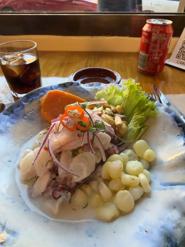 칸차의 메뉴는 페루의 다채로운 맛을 경험할 수 있는 요리들로 가득합니다. 그 중에서도 세비체는 칸차를 대표하는 메뉴 중 하나입니다. 신선한 해산물을 사용한 세비체는 입 안에서 사르르 녹아내리는 듯한 식감과 함께, 상큼하면서도 매콤한 맛이 조화롭게 어우러집니다. 특히, 칸차의 세비체는 신선한 재료를 사용하여 만들어지기 때문에, 그 풍미가 더욱 깊고 풍부하게 느껴집니다.