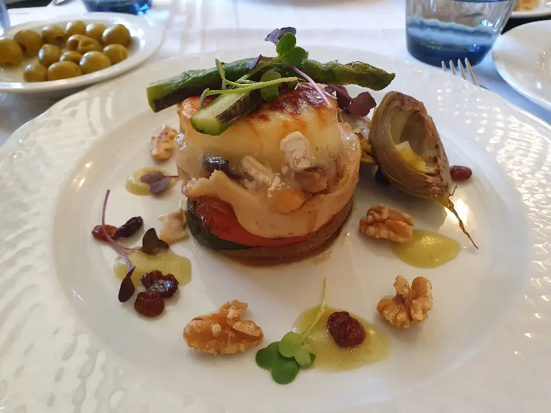 나는 염소 치즈를 올린 계절 채소 구이를 주문했다. 알록달록한 색감의 채소들이 눈을 즐겁게 했다. 애호박, 토마토, 가지 등 다양한 채소들이 층층이 쌓여 있었고, 그 위에 염소 치즈가 듬뿍 올려져 있었다. 처음 맛보는 독특한 향의 채소도 있었다. 염소 치즈의 강렬한 풍미는 호불호가 갈릴 수 있겠지만, 신선한 채소들과의 조화는 훌륭했다. 마치 자연을 그대로 옮겨 놓은 듯한 건강한 맛이었다.