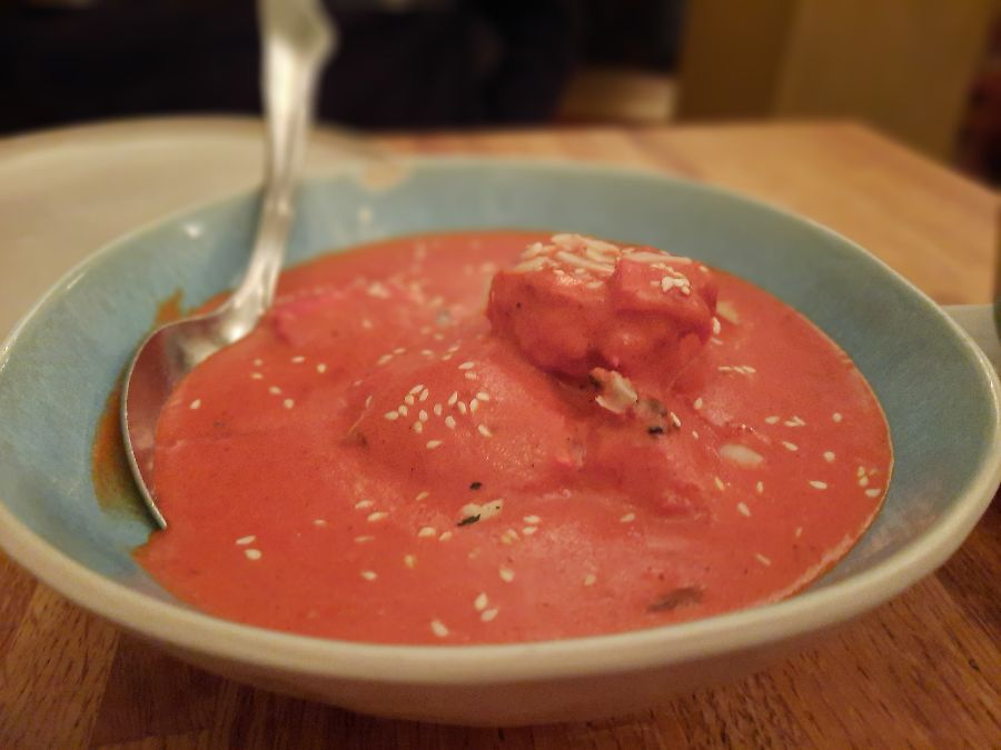 많은 이들이 ‘인생 버터 치킨’이라 극찬하는 이 요리는 Indian Aroma Madrid의 명성을 대표합니다. 부드러운 닭고기가 진하고 고소한 토마토 기반의 크림 소스와 만나 입안 가득 황홀한 풍미를 선사합니다. 붉은색 소스 위로 곱게 뿌려진 참깨는 시각적인 아름다움뿐 아니라 은은한 고소함을 더해줍니다.