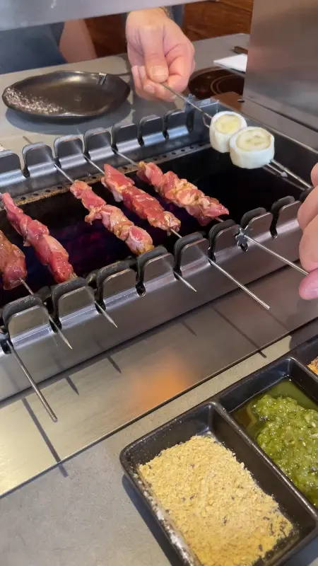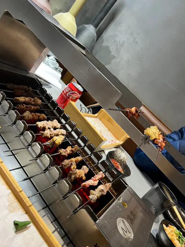 무무 핫팟 바비큐의 또 다른 자랑은 바로 자동 회전 바비큐다. 꼬치에 꽂힌 고기와 야채들이 자동으로 회전하며 골고루 익어가는 모습은 시각적인 즐거움을 선사한다.