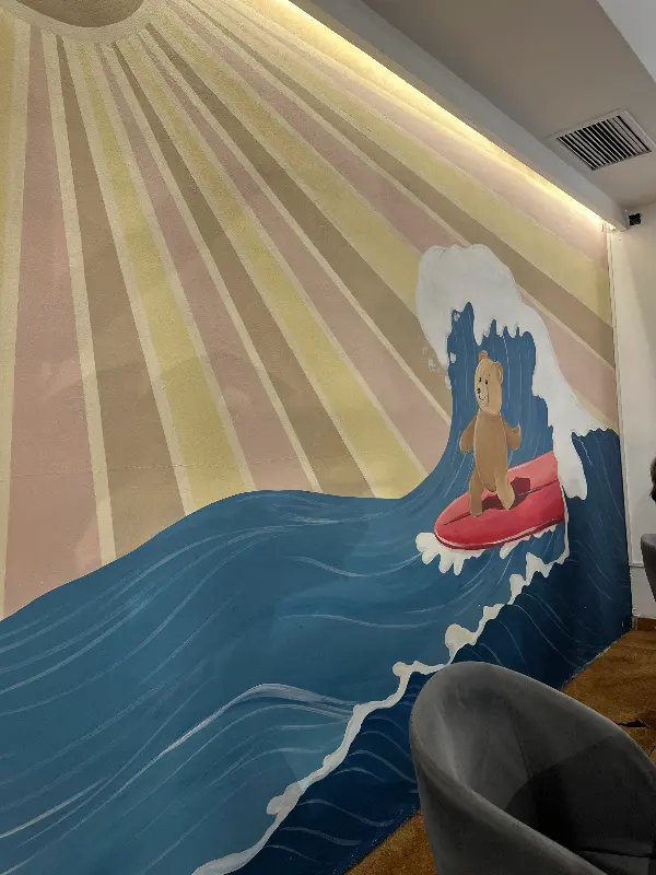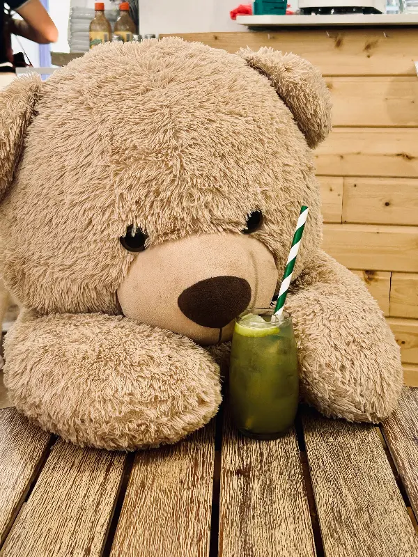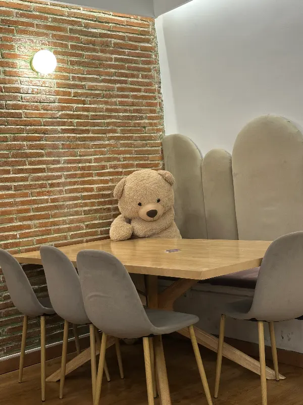 카페 안으로 들어서자마자 가장 먼저 눈에 띈 것은 테이블마다 놓여 있는 귀여운 곰 인형들이었다. 혼자 방문한 손님을 위해 친구가 되어주는 곰 인형이라는 컨셉이 마음을 따뜻하게 녹였다는 후기가 뇌리를 스쳤다. 벽돌 벽에는 은은한 조명이 비추고, 천장에는 싱그러운 식물들이 드리워져 아늑하면서도 편안한 분위기를 자아냈다. 마치 동화 속에 들어온 듯한 착각을 불러일으키는 공간이었다.