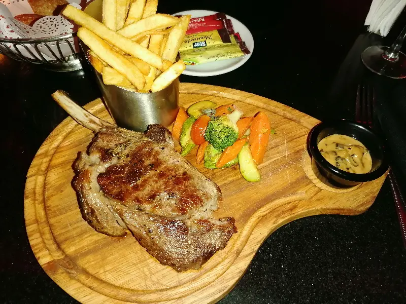 곧이어 등장한 립아이 스테이크는 압도적인 비주얼을 자랑했다. 육즙이 가득한 스테이크는 겉은 바삭하고 속은 촉촉하게 구워져 있었다. 칼을 대는 순간, 부드럽게 잘리는 스테이크의 질감은 신선함을 증명하는 듯했다. 한 입 맛보니, 풍부한 육즙과 깊은 풍미가 입 안 가득 퍼져 나갔다. 곁들여진 구운 채소는 스테이크의 느끼함을 잡아주었고, 완벽한 조화를 이루었다.