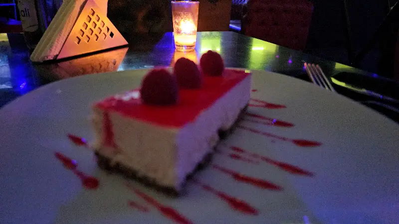 식사를 마치고, 디저트로 치즈 케이크를 주문했다. 부드러운 치즈 케이크 위에 올려진 라즈베리는 상큼함을 더해주었고, 입 안을 깔끔하게 마무리해 주었다. 은은한 촛불 아래, 달콤한 디저트를 맛보며 마라케시의 밤은 더욱 깊어갔다.