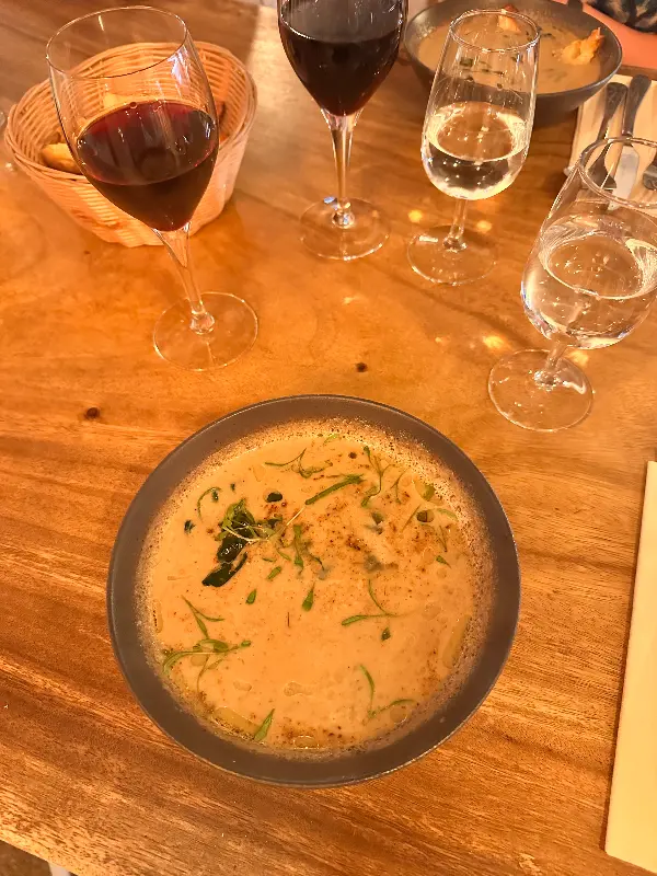 특히 메인 요리는 신선한 해산물과 풍부한 향신료가 완벽하게 조화를 이루어 잊을 수 없는 맛을 선사했습니다. 한 입 베어 무는 순간, 입안 가득 퍼지는 바다의 향기와 신선한 재료의 풍미는 미각을 황홀하게 만들었습니다. 셰프의 열정과 정성이 느껴지는 요리들은 단순한 식사를 넘어 하나의 예술 작품과 같았습니다.