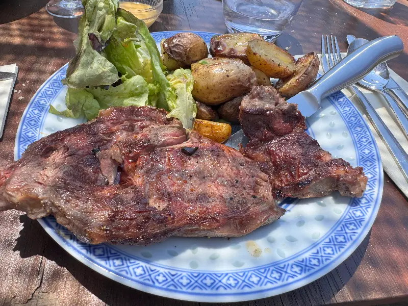 20유로 세트 메뉴(애피타이저, 메인 코스, 디저트)는 V&V Coti의 훌륭한 가성비를 보여주는 대표적인 메뉴입니다. 직접 만든 듯한 신선하고 풍성한 요리들은 입안 가득 지중해의 풍미를 선사했습니다. 전채 요리부터 디저트까지, 모든 음식은 정성스럽게 준비되었고, 플레이팅 또한 예술적이었습니다.
