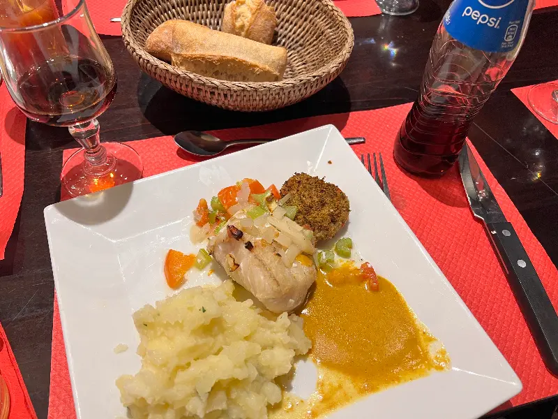 메뉴를 펼쳐 들고 고민에 빠졌습니다. 다양한 프랑스 요리 중에서 무엇을 골라야 할지 망설여졌지만, 직원분의 추천을 받아 대구 요리와 돼지고기 요리를 주문했습니다. 샐러드도 하나 추가했죠. 주문을 마치고 나니, 바삭한 빵이 담긴 바구니와 시원한 물이 먼저 나왔습니다. 빵을 한 조각 뜯어 입에 넣으니, 고소한 풍미가 입안 가득 퍼져 나갔습니다.