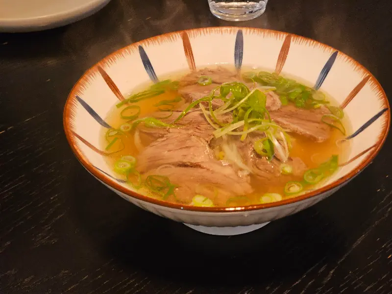이어서 따뜻한 국물이 매력적인 소고기 포를 맛보았다. 깊고 진한 육수와 부드러운 소고기의 조화는 추운 날씨에 언 몸을 사르르 녹여주는 듯했다. 얇게 썰린 소고기는 입에 넣는 순간 사르르 녹아내렸고, 향긋한 허브 향은 입안을 개운하게 만들어 주었다.