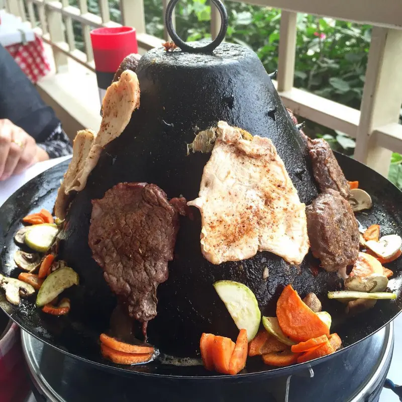 고민 끝에 주문한 메뉴가 테이블 위에 놓이는 순간, 탄성이 절로 나옵니다. 마치 예술 작품을 감상하는 듯한 아름다운 플레이팅은, 식사 전부터 눈을 즐겁게 합니다. 커다란 원뿔 모양의 뜨거운 철판 위에 육즙 가득한 스테이크와 닭가슴살, 알록달록한 채소들이 보기 좋게 담겨 있습니다. 익어가는 고기의 향긋한 냄새가 코를 간지럽히고, 식욕을 자극합니다.