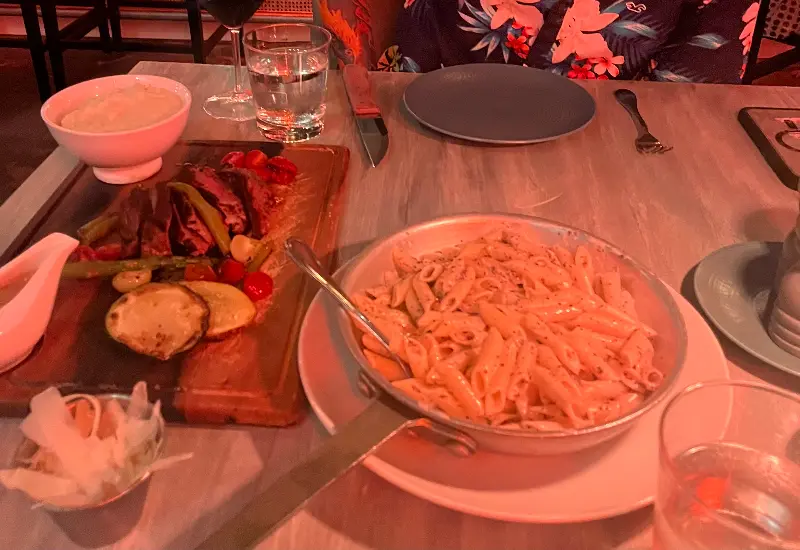 세밀라의 메인 요리 중 하나인 스테이크와 파스타. 푸짐한 양과 훌륭한 맛으로 만족감을 선사한다.