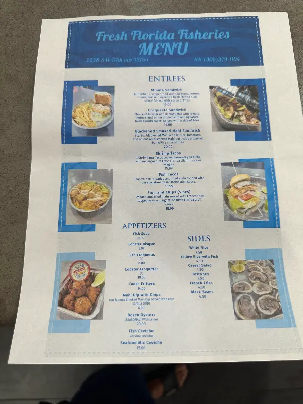 프레시 플로리다 피셔리스에서의 식사는 정말 훌륭한 경험이었다. 신선한 해산물과 정성껏 만든 요리, 그리고 친절한 서비스까지, 모든 것이 완벽했다. 특히, 옐로테일 스내퍼는 조리 방법에 따라 맛이 천차만별이었는데, 키웨스트에서 먹었던 완벽하게 구워진 옐로테일 스내퍼는 정말 잊을 수 없는 맛이었다.