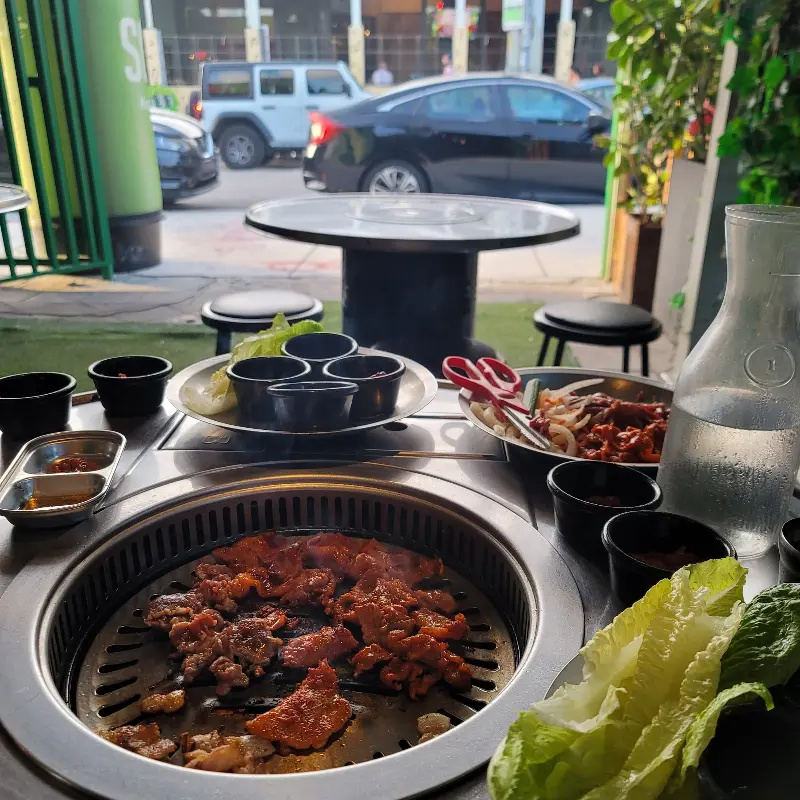 “소주”의 대표 메뉴는 단연 한국식 바비큐다. 삼겹살, 소고기, 차돌박이, 매콤한 돼지고기 등 다양한 종류의 고기를 맛볼 수 있는 바비큐 세트는, 여러 명이 함께 즐기기에 안성맞춤이다. 테이블 중앙에 놓인 숯불 위에서 지글지글 익어가는 고기를 바라보는 것만으로도 행복감이 밀려온다. 넉넉하게 제공되는 토핑은 물론, 부족하면 더 달라고 할 수도 있다는 점도 매력적이다.