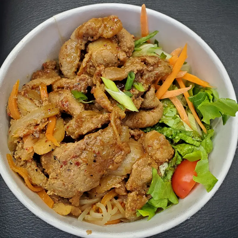 메뉴판을 펼쳐 들자, 친숙한 한글과 영어 설명이 함께 눈에 들어온다. 한국식 바비큐는 물론, 라면, 윙 등 다양한 메뉴가 준비되어 있어 선택의 폭이 넓다. 그중에서도 가장 눈길을 끄는 것은 바로 돼지 덮밥. 포장해서 맛보았다는 한 방문객은 “정말 최고”라며 극찬을 아끼지 않았다. 그릇이 넘칠 정도로 푸짐한 양, 잡채와 야채를 곁들인 풍성함, 그리고 무엇보다 “엄마가 해주시던 맛 그대로”라는 표현은, 돼지 덮밥에 대한 기대감을 한껏 끌어올린다. 너무 달지도 않고, 그렇다고 너무 맵지도 않은, 딱 좋은 양념에 부드러운 고기. 상상만으로도 입안에 침이 고인다.