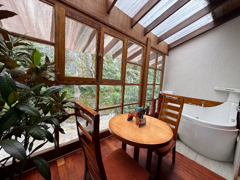 객실 내 자쿠지에서 창밖의 아름다운 풍경을 감상하며 피로를 풀 수 있습니다. 푸르른 자연이 눈 앞에 펼쳐지는 특별한 경험을 선사합니다.