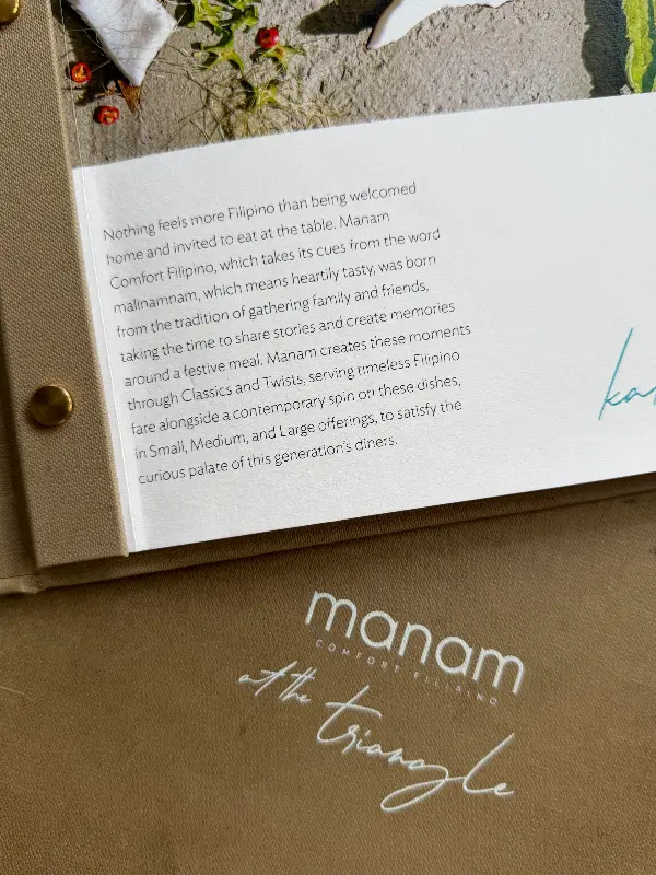 마닐라 아얄라 트라이앵글, 그 활기 넘치는 도심 속에서 필리핀의 맛과 향을 찾아 떠나는 미식 여행. 오늘은 특별한 곳, ‘마남’에서의 잊지 못할 식사 경험을 여러분과 함께 나누려 합니다. 방문 전부터 설레는 마음을 안고, 문을 열고 들어서는 순간부터 식사를 마치고 나서는 순간까지, 모든 순간이 감동으로 가득했던 그곳으로 함께 떠나보시죠.