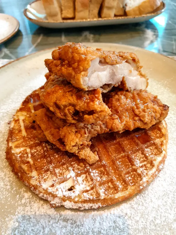 바삭한 와플 위에 촉촉한 닭고기 튀김이 올라간 메뉴는 달콤함과 고소함의 완벽한 조화를 자랑합니다.