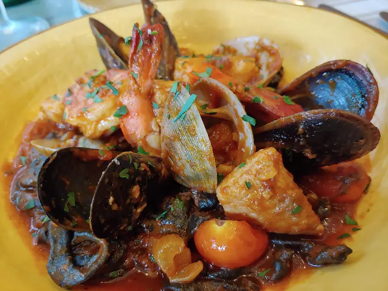 돌판에 구운 페타 치즈와 세부 베이 가리비는 정말 맛있었습니다. 따뜻하게 구워진 페타 치즈는 고소하면서도 짭짤한 맛이 일품이었으며, 세부 베이 가리비는 신선하고 탱글탱글한 식감이 돋보였습니다. 특히 오징어 먹물 파스타는 꼭 먹어봐야 할 메뉴입니다. 독특한 풍미와 깊은 맛은 잊을 수 없는 경험을 선사합니다.