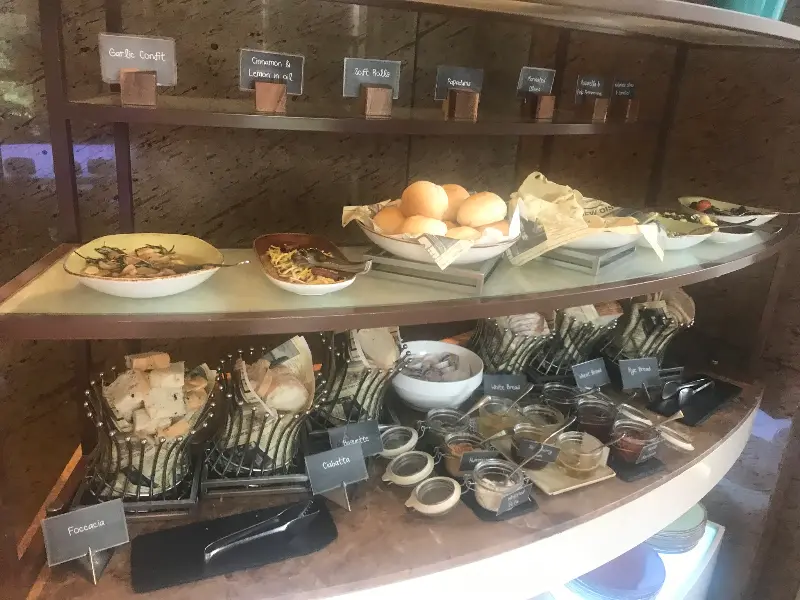 다양한 종류의 빵과 잼, 버터가 준비된 코너는 빵을 좋아하는 사람들에게 천국과 같습니다. 취향에 따라 다양한 조합으로 즐길 수 있습니다.
