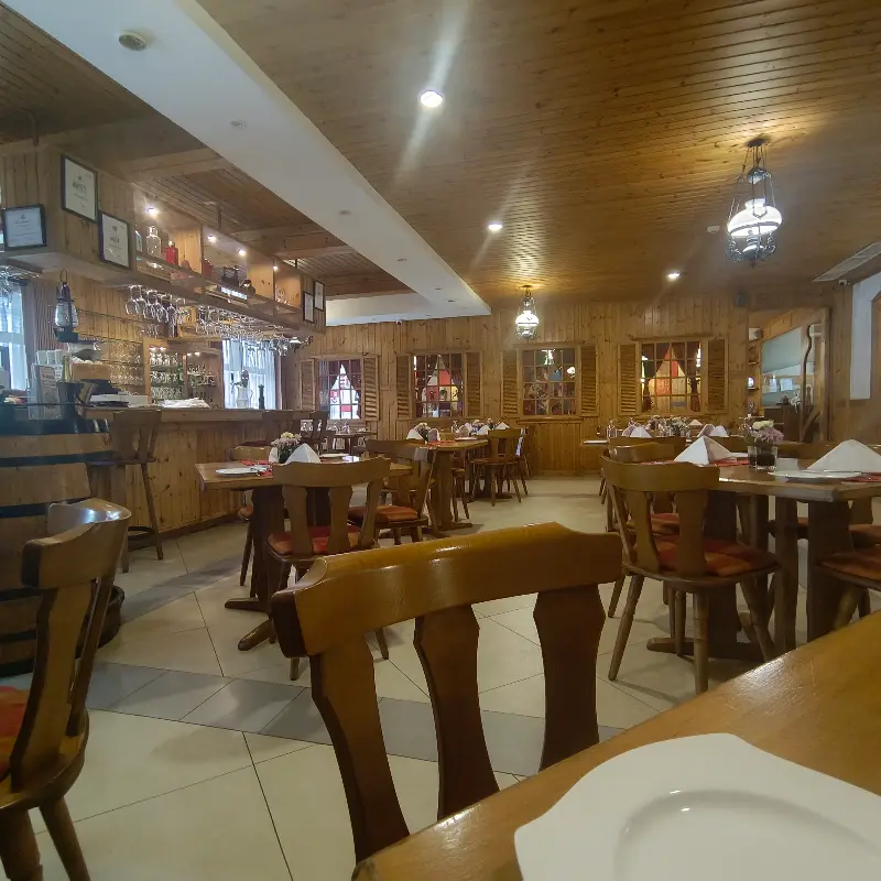 스위스풍의 배경 음악이 잔잔하게 흘러나오며, 아늑하고 편안한 분위기를 더합니다. 가족 단위 손님부터 연인, 친구들까지 다양한 사람들이 삼삼오오 모여 이야기꽃을 피우는 모습이 정겹습니다. 이곳에서는 시간이 멈춘 듯, 여유로운 식사를 즐길 수 있습니다.