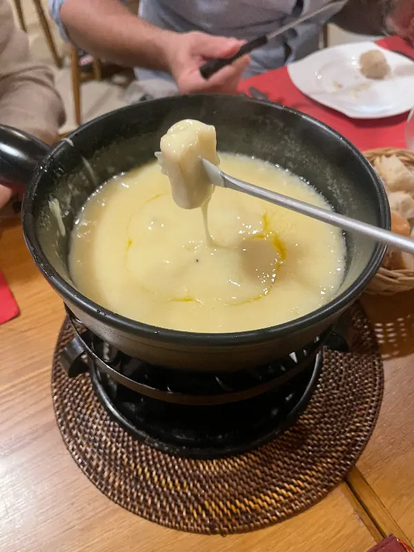 가장 먼저 주문한 메뉴는 치즈 퐁듀. 뜨겁게 녹아내린 치즈의 향긋한 향이 코를 자극합니다. 함께 제공되는 빵을 포크에 꽂아 치즈에 푹 담가 한 입 베어 물면, 입안 가득 퍼지는 고소함과 풍부한 풍미가 일품입니다. 퐁듀는 2인분이라고 하지만, 실제로 온 가족이 함께 즐기기에도 충분한 양입니다.