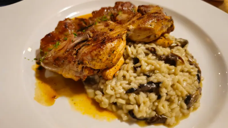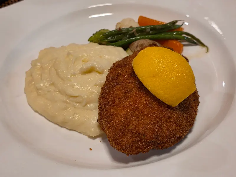 뢰스티를 곁들인 송아지 고기 슬라이스는 부드러운 송아지 고기와 바삭한 뢰스티의 조화가 훌륭합니다. 특히 뢰스티는 겉은 바삭하고 속은 촉촉하게 구워져, 씹을수록 고소한 풍미가 느껴집니다.