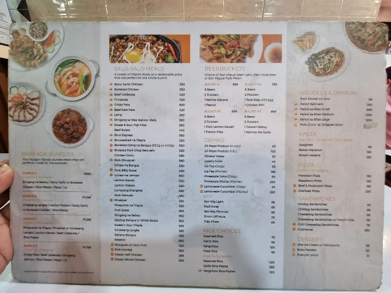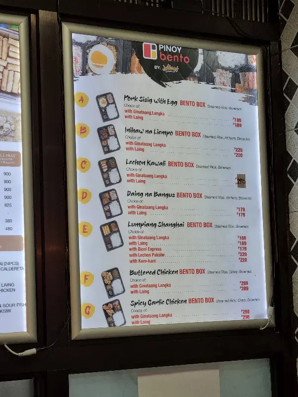 졸리언트 레스토랑의 메뉴는 필리핀의 다양한 요리를 선보입니다. 라잉, 크리스피 시식, 비프 카레카레, 버터 치킨 등 이름만 들어도 군침이 도는 메뉴들이 가득합니다. 메뉴판을 가득 채운 음식 사진들은 시각적인 즐거움까지 선사합니다. 선택 장애가 있는 사람이라면 메뉴 고르기가 쉽지 않겠지만, 그만큼 다양한 선택지가 있다는 뜻이겠죠.