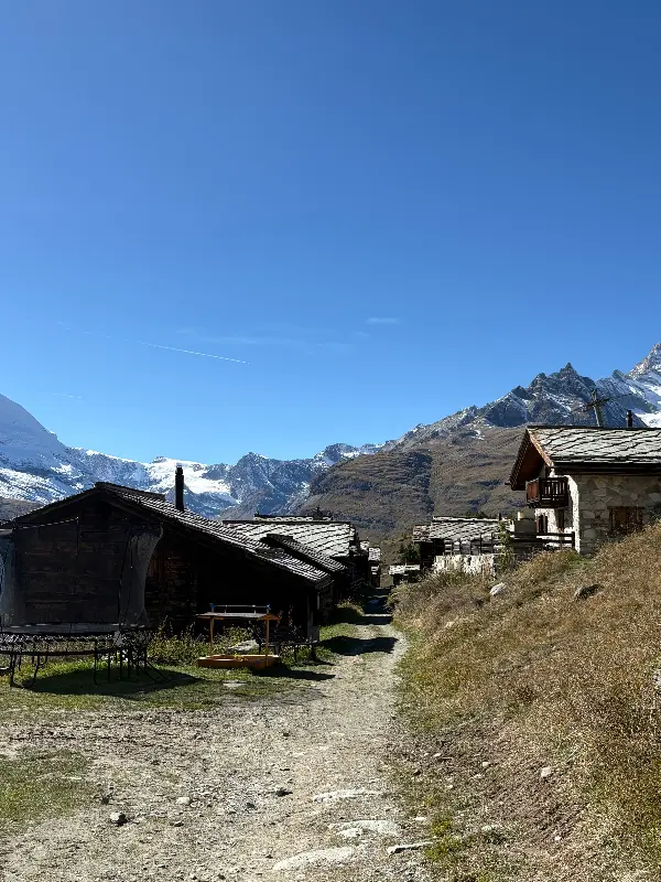 푸니쿨라에서 내려 숨을 고르며 수네가를 향해 발걸음을 옮겼다. 알프스의 공기는 예상대로 상쾌했지만, 오르막길은 만만치 않았다. 15분 남짓 걸었을까, 저 멀리 Chez Vrony의 아늑한 모습이 눈에 들어왔다. 가는 동안 펼쳐진 그림 같은 풍경 덕분에 오히려 배가 더 고파지는 듯했다.