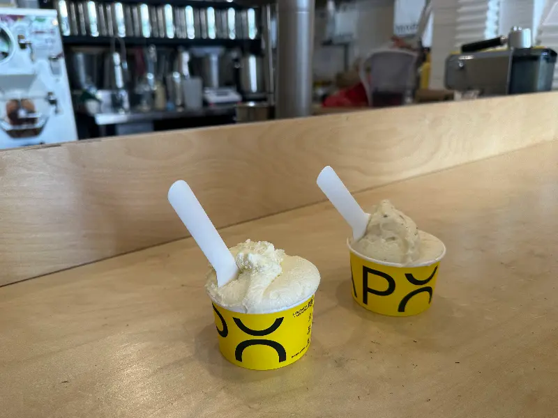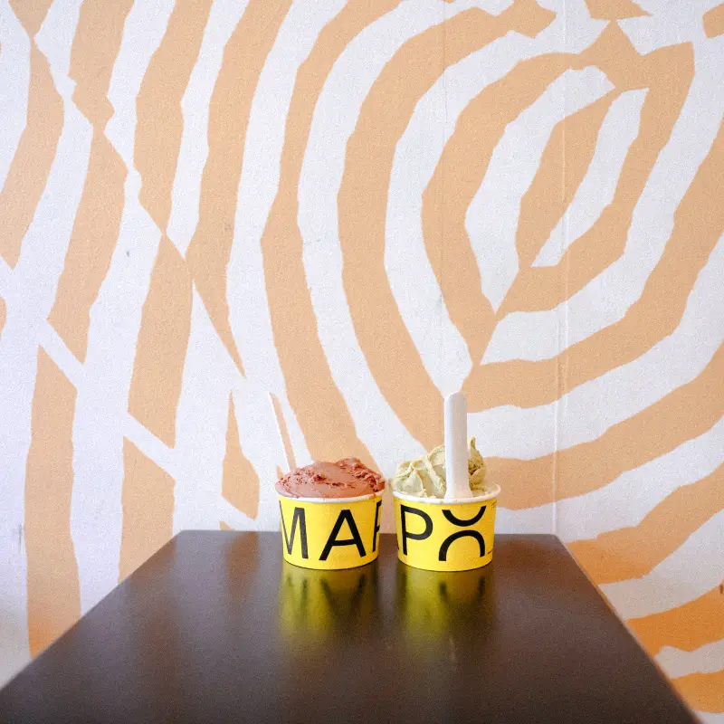 고민 끝에 친구와 나는 각자 다른 맛을 골라 나눠 먹기로 했다. 나는 솔티드 카라멜, 친구는 만다린 마스카포네를 선택했다. “salted caramel 이 베스트메뉴라해서 먹어봤는데 양도 많도 크리미해서 맛있었어요! 다만 좀 비싼 것 같아요”라는 리뷰처럼, 솔티드 카라멜은 MAPO의 대표 메뉴 중 하나였다. 친구의 선택 역시 상큼한 맛을 좋아하는 우리의 취향을 반영한 결과였다. 메뉴판 옆에는 젤라또를 담아주는 공간이 투명하게 드러나 있었다. 스테인리스 덮개들이 일렬로 놓여있는 모습에서 깨끗함과 신뢰감이 느껴졌다.