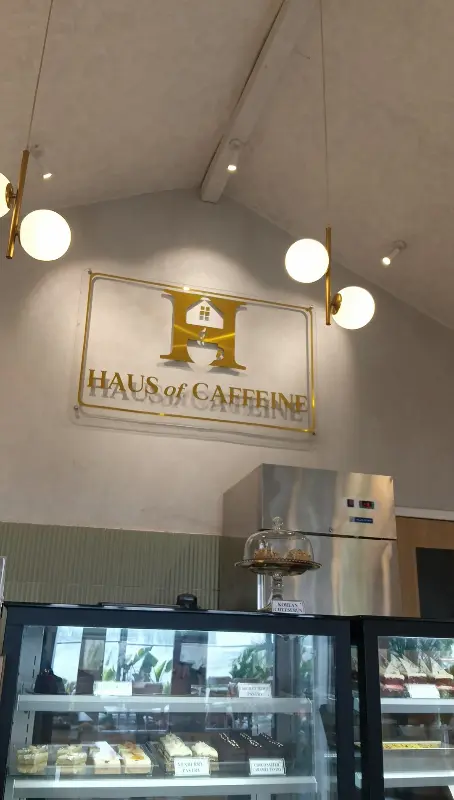 모던한 디자인의 간판, 하우스 오브 카페인의 세련된 이미지를 보여줍니다.