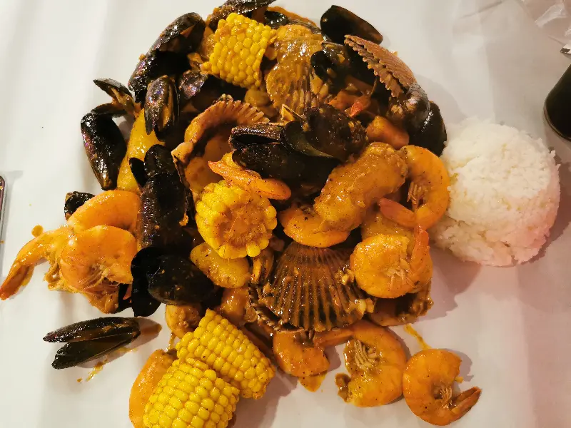 저희는 네 명이서 4인용 해산물 플래터를 주문했습니다. 큼지막한 랍스터와 스파이더 크랩이 플래터의 중앙을 장식하고 있었는데, 그 위풍당당한 모습에 모두 감탄사를 연발했습니다. 랍스터의 쫄깃한 살과 스파이더 크랩의 풍부한 내장은 정말 훌륭했습니다. 함께 제공된 케이준 소스에 밥을 비벼 먹으니 그야말로 환상의 조합이었습니다.