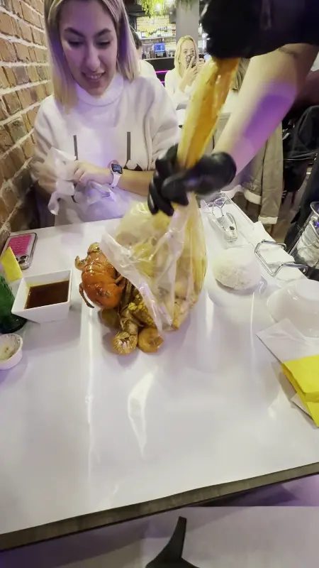 전통적인 접시나 식기 없이 앞치마와 장갑만 착용한 채 맨손으로 해산물을 즐기는 것은 WOWCRAB에서만 경험할 수 있는 특별한 재미입니다. 처음에는 다소 지저분하게 느껴질 수도 있지만, 음식을 맛보는 순간 모든 것을 잊게 됩니다. 격식 없는 자유로운 분위기 속에서 오롯이 해산물의 풍미를 느끼며 즐거운 시간을 보낼 수 있었습니다.