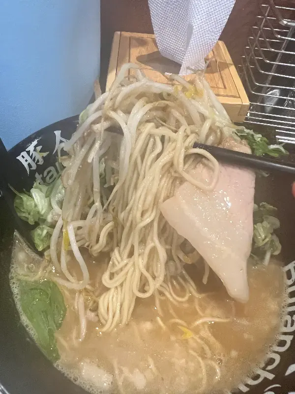 라멘을 먹는 중간중간, 김치를 곁들여 먹으니 느끼함도 싹 가시고 입안이 개운해졌다. 특히 숙주를 듬뿍 넣은 덕분에, 아삭아삭 씹히는 식감이 더해져 더욱 맛있었다. 면과 숙주, 국물을 함께 떠서 입안 가득 넣으니, 세상 부러울 것이 없었다.