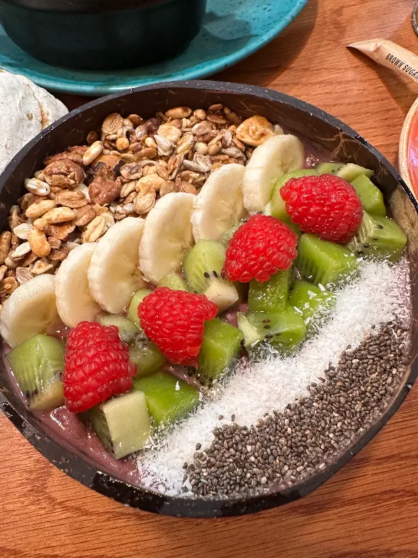 코코넛 그릇에 담겨 더욱 특별하게 느껴지는 아사이볼, 과일과 그래놀라의 조화가 환상적입니다.